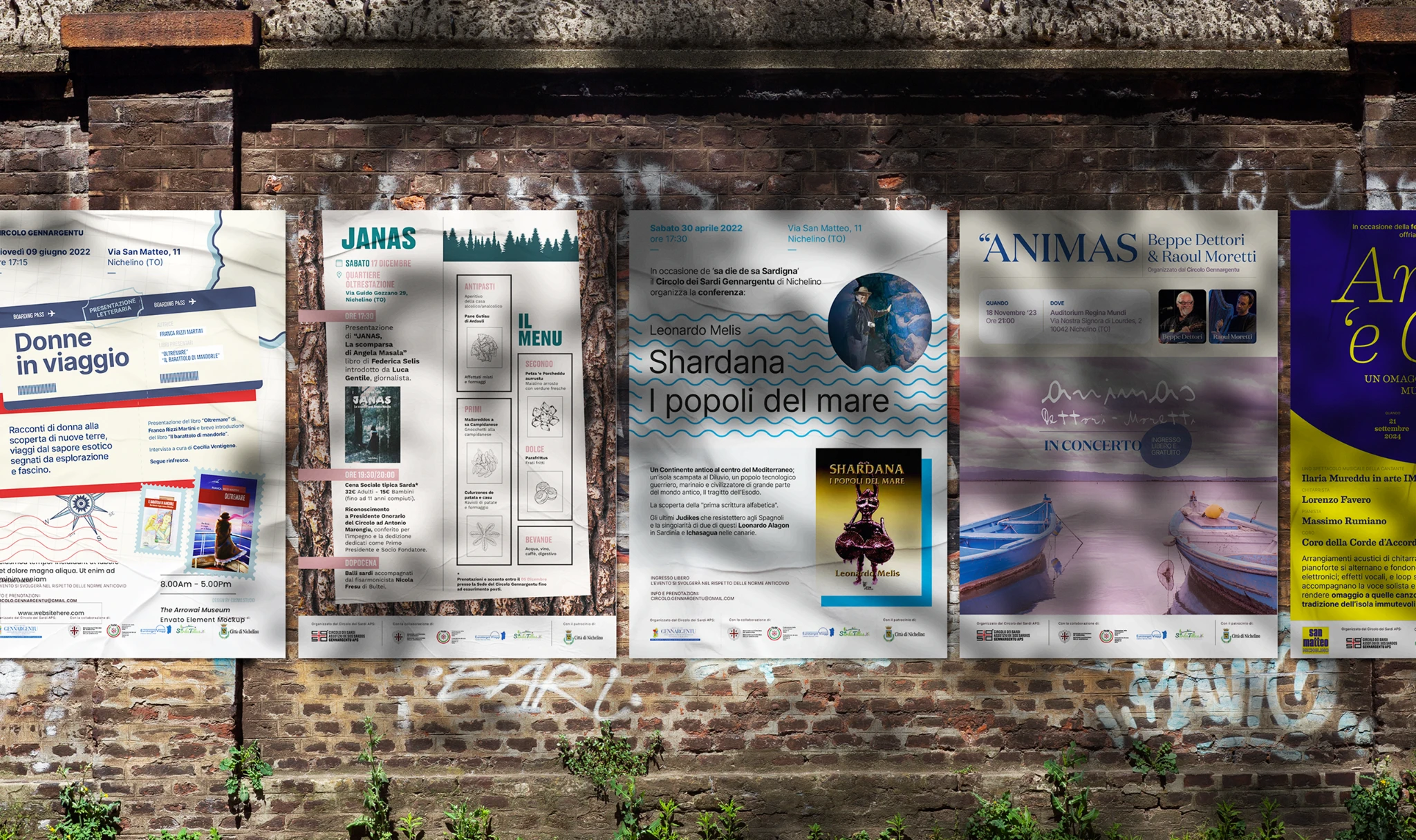 Locandine, flyer, grafiche per eventi sono stati progettati per restituire coerenza e visibilità alle iniziative culturali.